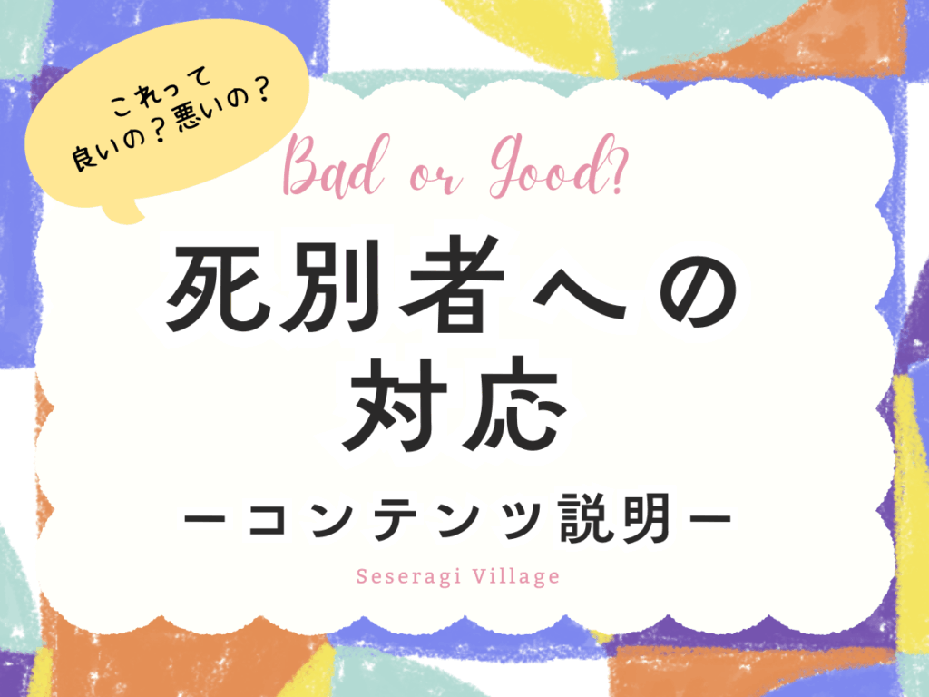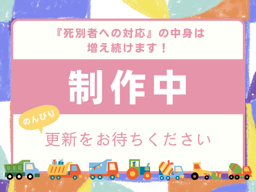 『死別者への対応』はこれから少しづつ増えていきます。何が良かったのか悪かったのか更新と共に一緒に思いを馳せていただけたら嬉しいです!「こんなこと言われたよー!」「これ嬉しかったんだ〜」などのエピソードもお待ちしています。