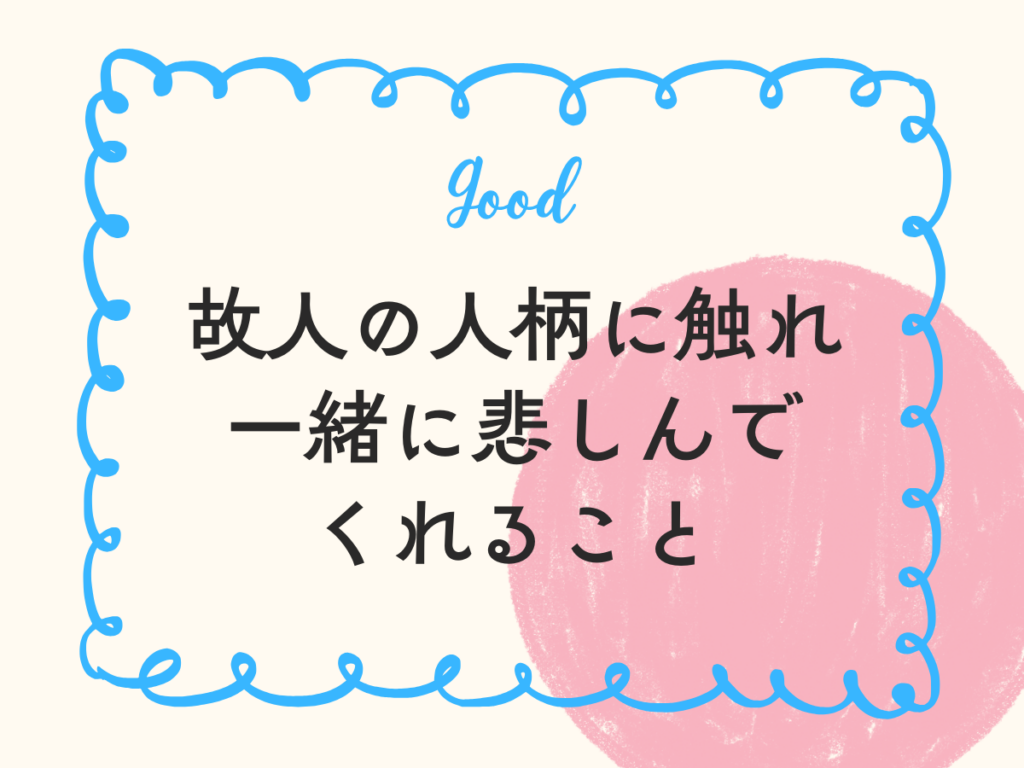 故人の人柄に触れ、一緒に悲しんでくれること